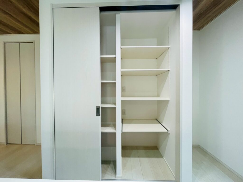 背面には十分な収納が可能なパントリーが備わっております🎶