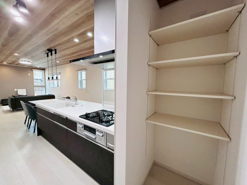 シンプルで余裕のある間取りが、キッチンとリビングを心地よく結び、温もりを感じられる空間を生み出します! 落ち着いた雰囲気の中でくつろぎながら、食卓を囲む時間を楽しめる快適な住まいです♪
