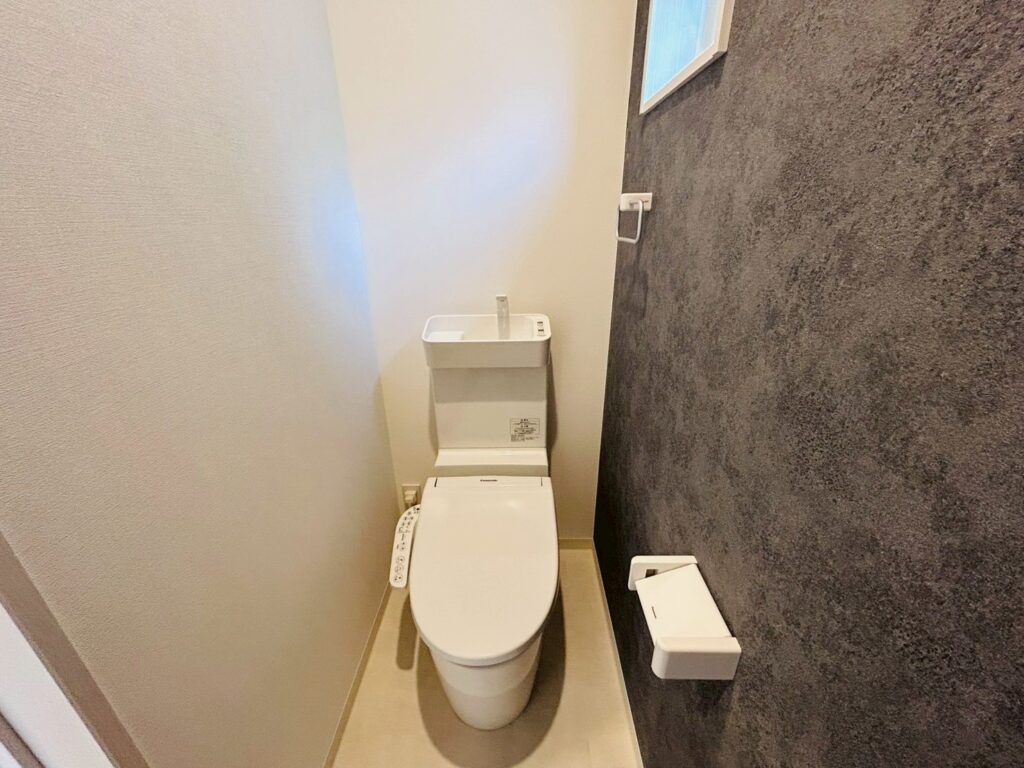洗練されたシンプルな壁紙が、落ち着きと快適さを感じられる空間を演出します。 タンクレスタイプを採用しているため、お掃除もしやすく、いつでも清潔な状態を保てます。